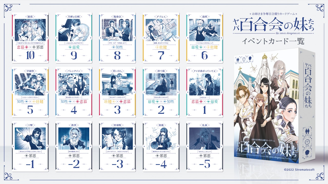 「ヤバ百合会の妹たち」は伝統ある女学園の新入生となって、先輩であるお姉さまたちからの寵愛を得ることを目指す「お姉さま争奪百合競りカードゲーム」です。